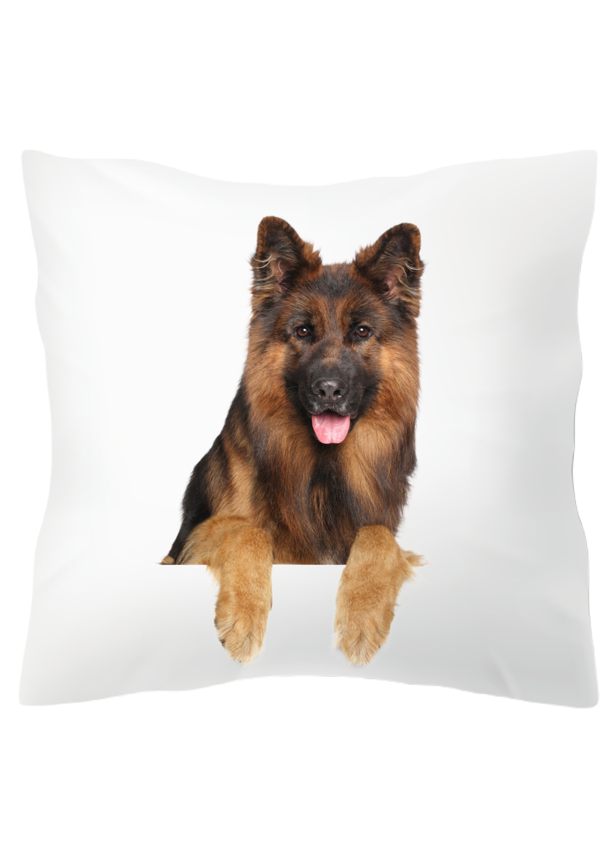 Kolorowy, trwały nadruk (pies rasy owczarek) nadaje poduszce wyjątkowego uroku.